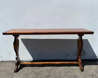 Antique pine farmhouse table for sale. Rustic and simple country French pine farmhouse table constructed from pine. European Antique Pine Warehouse sells pine furniture and European reproductions in Atlanta Georgia. Antique Sheraton pine farmhouse table stretcher base 255h295h73w36d shipping is not free.